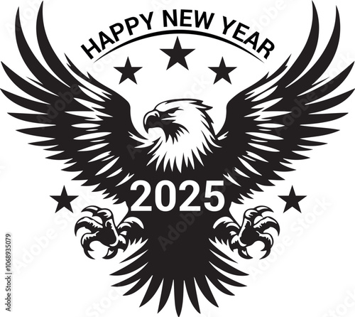 Obraz premium Happy New Year 2025 Eagle bird silhouette vector design.