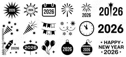 © graphixecho, Naklejka premium happy new year 2026 festive icons