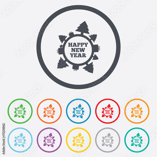 Obraz premium Happy new year globe sign icon. Gifts and trees.
