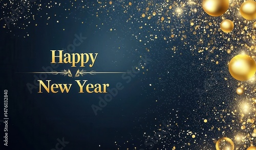 Naklejka premium Happy New Year Gold Glitter and Orbs Background