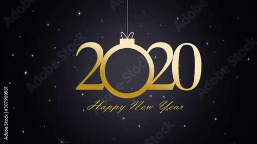 Fototapeta premium Happy new year 2020, gold text and star on black background.