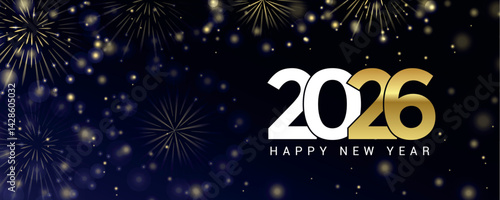 © krissikunterbunt, Fototapeta premium happy new year 2026 golden firework on night background vector illustration