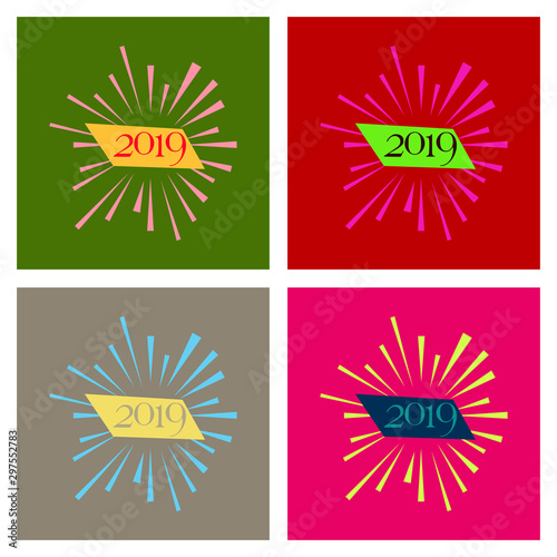 © anastasia_horovits, Fototapeta premium 2019 Happy New Year greeting card. Celebration white background with pig and place for your text. Vector Illustration