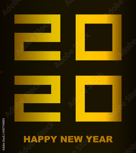 Fototapeta premium Happy New Year 2020 - greeting card, flyer, poster, invitation - square font, golden numbers - vector
