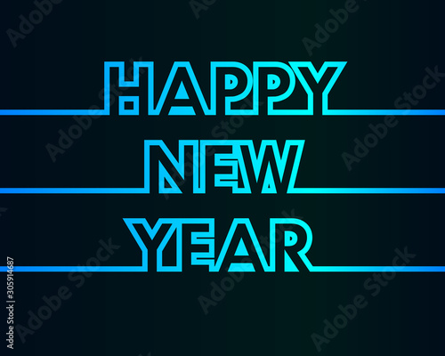 © visart, Obraz premium Happy New Year - greeting card, invitation, poster, flyer - cold continuous outline letters - vector
