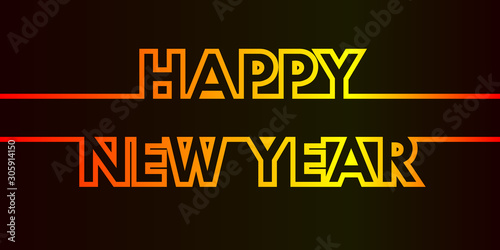 © visart, Obraz premium Happy New Year - greeting card, invitation, poster, flyer - warm continuous outline letters - vector