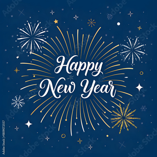 © Murtaza, Fototapeta premium Happy new year greeting card with fireworks on dark blue background