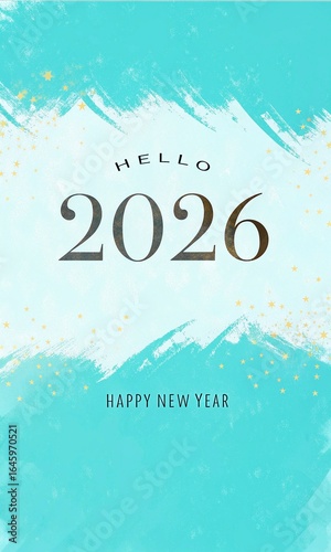 © Sam, Naklejka premium Happy New Year 2026 greeting card with watercolor background. Vector illustration.