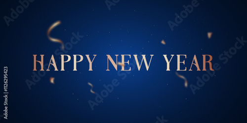 © greens87, Naklejka premium Happy New Year greeting with rose gold letters on blue