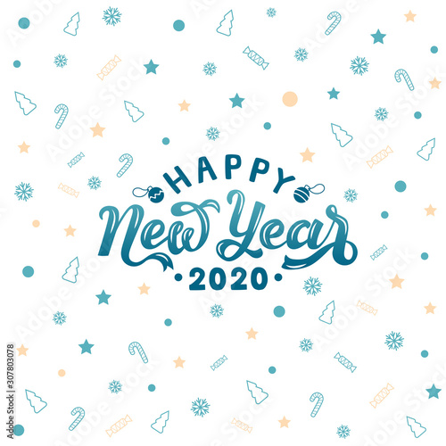 Fototapeta premium Happy 2020 New Year. Holiday vector illustration with lettering composition. Lettering typography poster. EPS 10