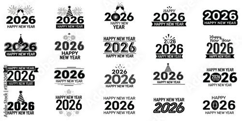 Obraz premium 2026 Happy new year icon set