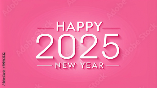 © Md Tariqul, Naklejka premium "2025 Happy New Year in clean Pink color minimalist style"