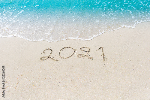 © pandaclub23, Fototapeta premium Happy New Year 2021 is coming concept sandy