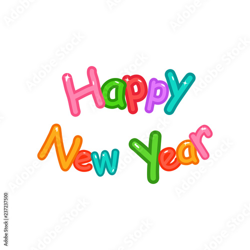 © Hatcha, Obraz premium Happy new year, letter alphabet, bubbles balloons font typography with stars sparkle shiny, cute and colorful vector poster, logo, sign