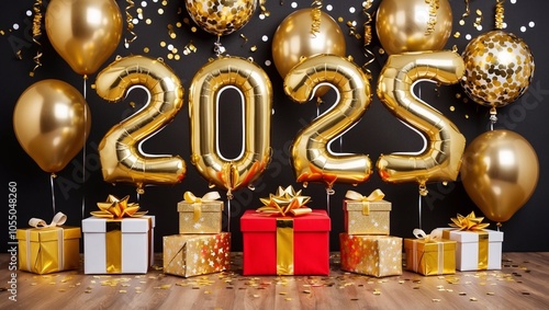 Fototapeta premium 2025 Happy New Year on purple background with glitter