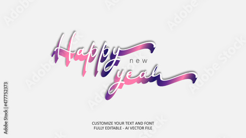 © Von's Graphic, Fototapeta premium Happy new year resolution note editable text effect gradient card illustration background vector