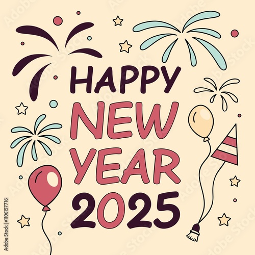 © BAHARTC11, Naklejka premium Happy New Year 2025 T-Shirt Design – Festive and Stylish Graphic