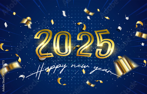 © Zc, Naklejka premium 2025 happy new year template banner with modern 3d text effect and beautiful sparkle luxury shiny ornament abstract gradient blue background design 42