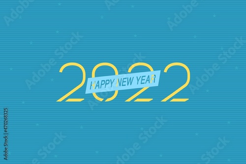 © Photoay, Naklejka premium 2022 Happy New Year text on blue vector illustration.  Celebrate holiday.