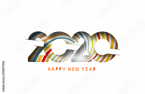 © Redshinestudio, Obraz premium Happy New Year 2020 Text Typography Design Pattern, Vector illustration.