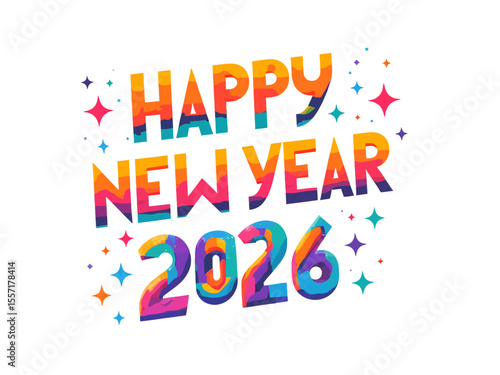 Fototapeta premium HAPPY NEW YEAR 2026 text with blocky 8 bit font on white background