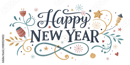 Fototapeta premium "Happy new year" typography design on transparent background or white...