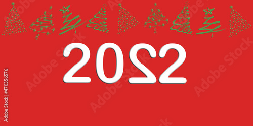 Naklejka premium Happy New Year 2022. White numbers and green Christmas trees on red...