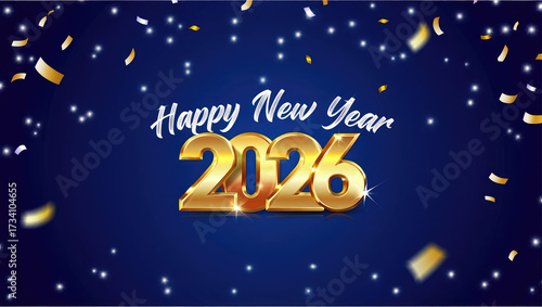 © silk, Naklejka premium Happy New Year 2026 with Blue Background