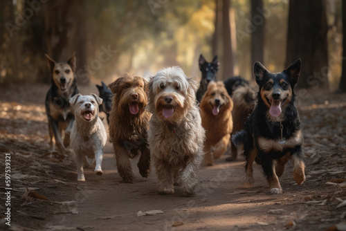 Obraz premium Happy Pack of Dogs in a Scenic Natural Setting