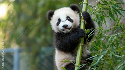 © MAKASIHMAS SIDNEY, Fototapeta premium Happy panda cub climbing bamboo, lush forest