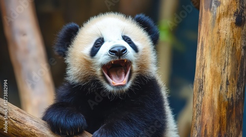 Obraz premium Happy panda cub enjoying playtime in the zoo
