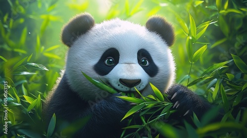 © Alief Shop, Fototapeta premium Happy Panda Eating Bamboo