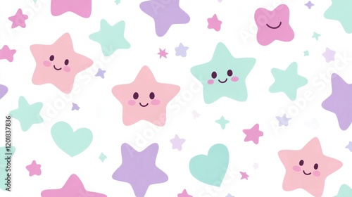 © Fenny, Obraz premium Happy pastel stars seamless pattern background