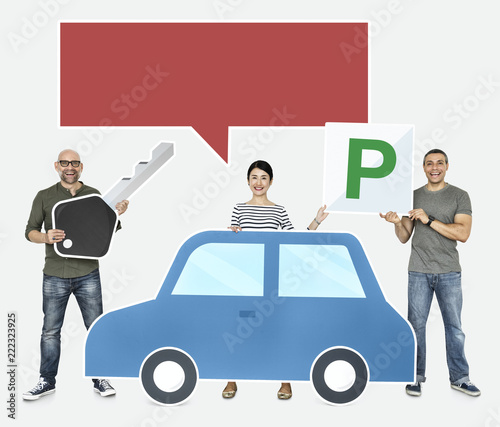© Rawpixel.com, Obraz premium Happy people holding car icons