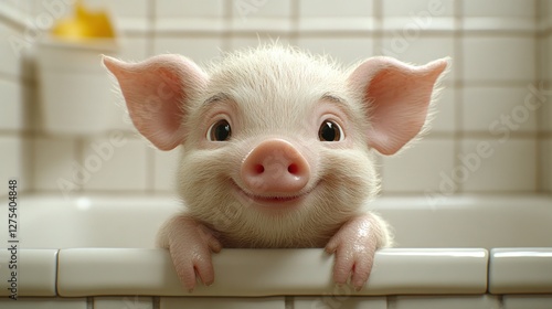 Fototapeta premium Happy piglet bath time, bathroom, clean