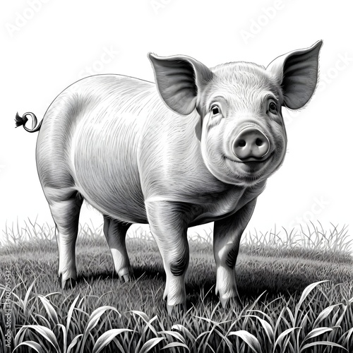 © Teeranan, Fototapeta premium Happy Piglet in the Grass