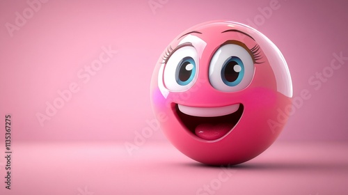 Fototapeta premium Happy pink emoji emoticon on pink background.
