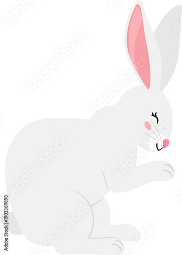 Obraz premium Happy rabbit laughing. Joyful white bunny sitting