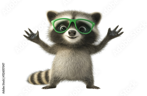 © adinuranjaya, Fototapeta premium Happy Raccoon Wearing Green Glasses