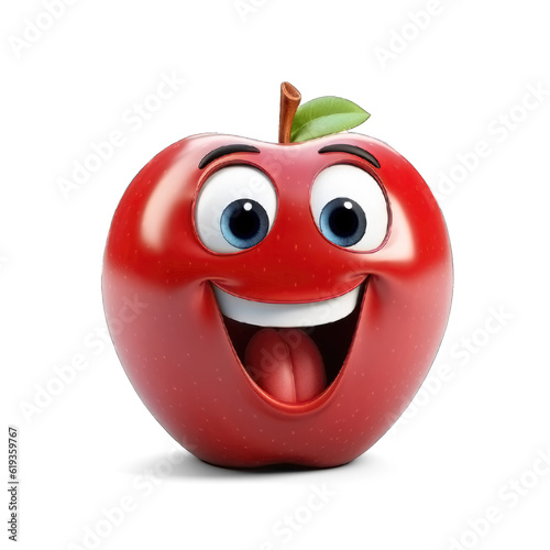 © fotogurme, Obraz premium Happy red apple with smile Cute Cartoon on transparent background