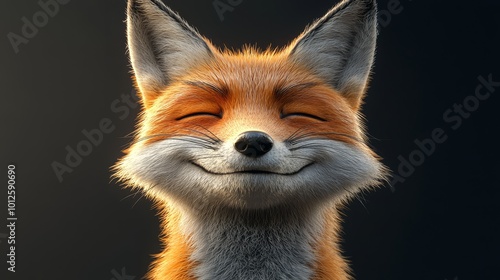 © jinna, Obraz premium Happy Red Fox with Closed Eyes and Smiling