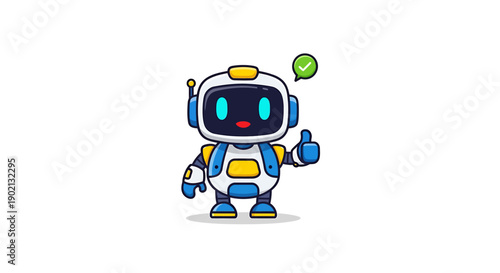 © Roni, Obraz premium Happy robot character showing thumbs up success gesture vector illustration