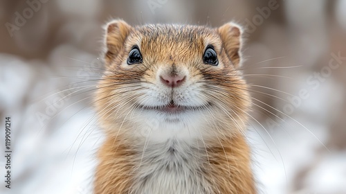 © Generative Media Lab, Obraz premium Happy rodent winter portrait, snowy background.