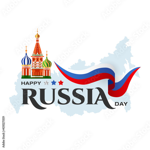 Fototapeta premium Happy Russia Independence Day Holiday Background with saint basils cathedral & Flag