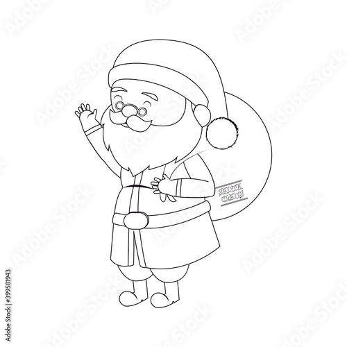 Obraz premium Happy santa claus cartoon with a gift bag. Vector illustration