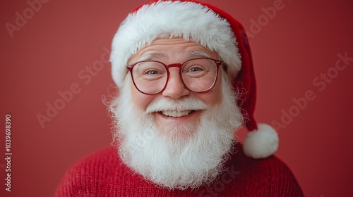 © Chaithat, Naklejka premium Happy Santa Claus with White Beard and Red Hat