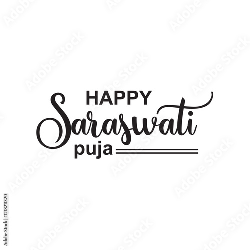 © Amit, Fototapeta premium Happy Saraswati Puja handwritten ink lettering inscription. calligraphy text. vector illustration
