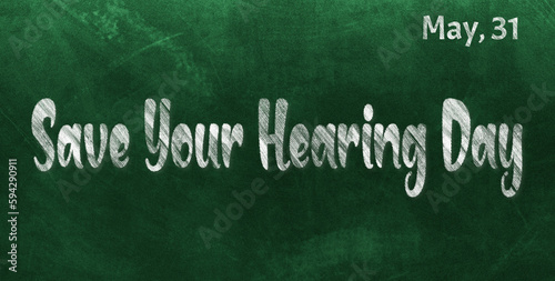 © Rehmat, Obraz premium Happy Save Your Hearing Day, May 31. Calendar of May Chalk Text Effect, design