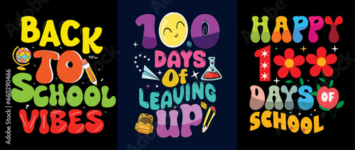 Fototapeta premium Happy School T-Shirt Design Celebration. Back to school vibes, 100 days of leveling up, happy 100 days of school kids t-shirt collection. Perfect for print items, posters, graphic templates