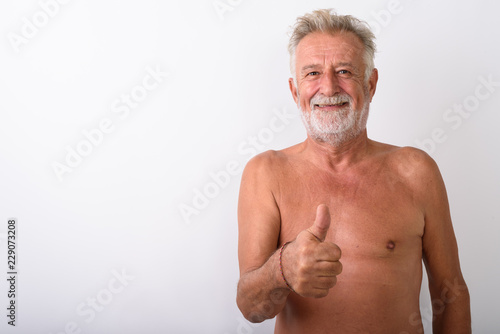 © Ranta Images, Fototapeta premium Happy senior bearded man smiling while giving thumbs up
